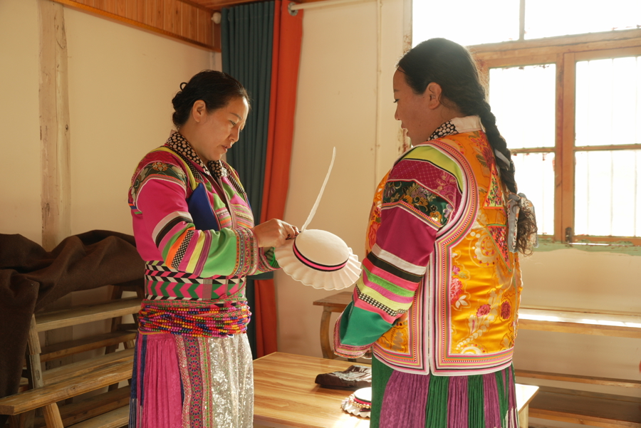 电影海报上,白马四姐妹穿着色彩斑斓的民族服饰,张同道提醒观众注意她们头上戴的圆顶礼帽,这种服饰和当地的地理环境似乎格格不入。“那里盛夏平均温度只有20摄氏度,夏天还经常点火。这样的帽子既不挡风,也不御寒,而且还很贵,手工做一顶要一个多礼拜,到现在为止没有人能告诉我白马人为什么要戴这样的帽子。”
