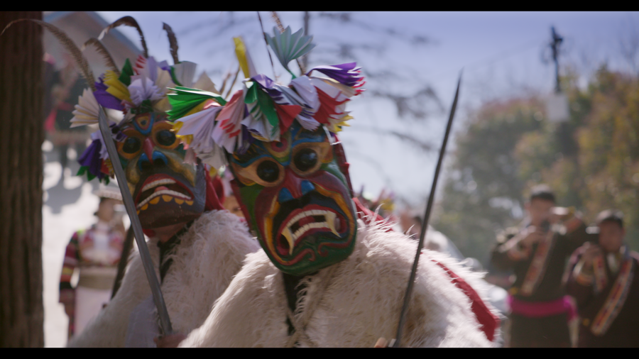 因为一场灾难,姐妹重新聚拢,共同投身于白马寨的重建中。也是这次拍摄,让张同道重新理解了白马。“第一次拍摄时,我把‘跳曹盖’当成一个奇观,调来一卡车的灯想把它拍得宏大,那次的拍摄是失败的。但这次,我理解了曹盖不是摆在博物馆的非遗,而是他们的生活方式。电影里,我用了一组慢动作拍摄跳舞时的场景,从牙齿缺失的老人到年轻少女都笑得那么美丽,跳舞时,他们好像脱离了现实庸俗、杂乱的日常生活,获得一种神性的光辉。”