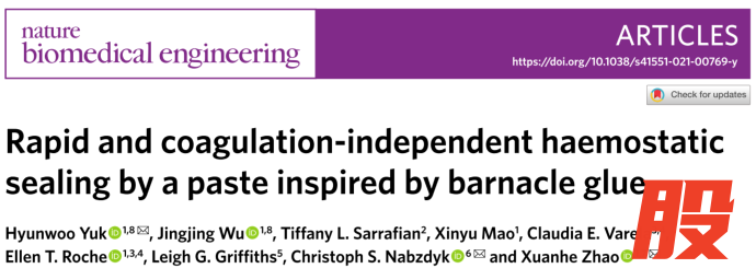 再获里程碑进展!2025年12月底,MIT赵选贺团队开发的仿藤壶止血生物胶水技术获得美国FDA 510K许可。
